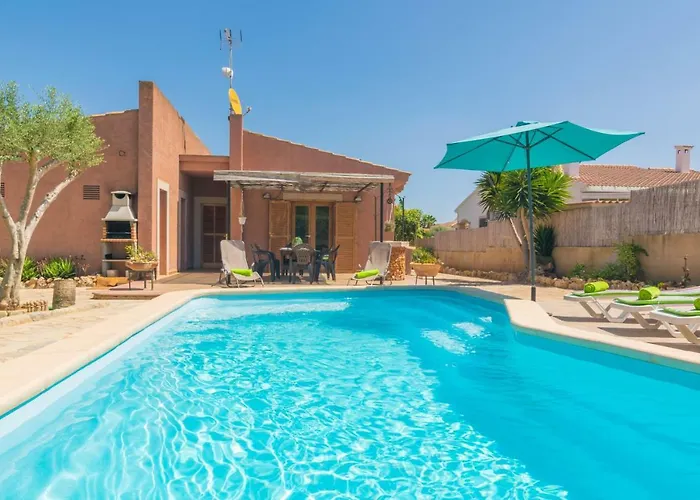 La villa de 160 m^2 Villa Can Cantari est située à Sa Coma, à 5 minutes à pied du Rancho Sa Coma. La villa a cette terrasse ensoleillée, la chaise longue et les jardins.